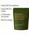 Need a mid-day boost without the jitters? Meet ENERGY β your new secret weapon for conquering to-do lists and spin class. Each naturally flavored raspberry gummy packs THC, CBG, plus L-Theanine and B12 to lift your mood and keep you locked in.