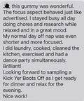 This is my passion project. If THCV is like the weed version of Ritalin, then Git’er Done is the gummy equivalent of my productivity boost. Undiagnosed but pretty sure, it helps me focus like a laser beam when I need to clear my to-do list.