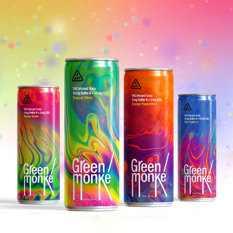 Green Monké offers non-alcoholic, hemp-infused sodas designed as low-dose alcohol alternatives. Each beverage combines Delta-9 THC and CBD for a balanced, enjoyable experience